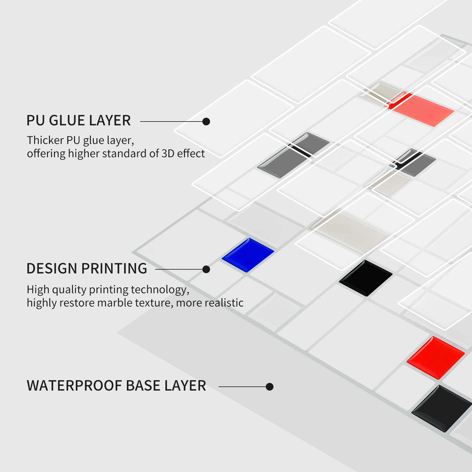 High quality 3D gel effect self-adhesive wall tiles.These are peel and stick concept tiles with Anti-bacterial, Anti-mould, Non-to...